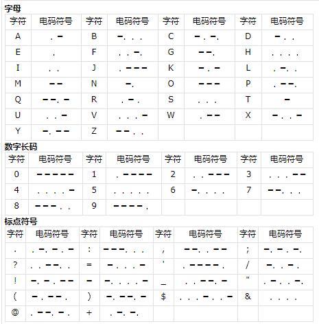 摩尔斯电码(又译为摩斯密码,Morse code)是一种时通时断的信号代码,通过不同的排列顺序来表达不同的英文字母、数字和标点符号。它发明于1837年,发明者有争议,是美国人塞缪尔·莫尔斯或者艾尔菲德·维尔。 摩尔斯电码是一种早期的数字化通信形式,但是它不同于现代只使用零和一两种状态的二进制代码,它的代码包括五种: 点、划、点和划之间的停顿、每个词之间中等的停顿以及句子之间长的停顿。