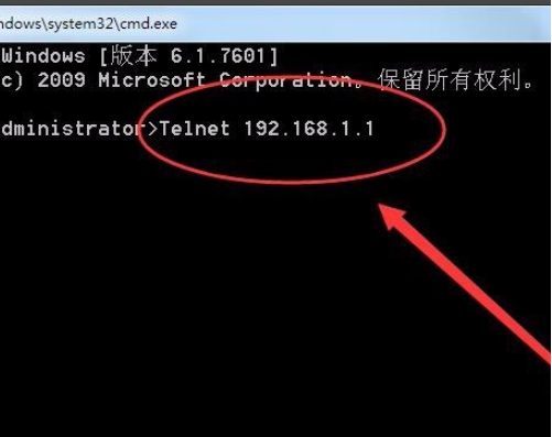 3、然后输入Telnet 192.168.1.1,如图所示。