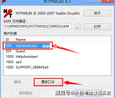 2.输入用户名:Administrator,不需要填写密码,然后按Enter。登录后,打开控制面板->“用户帐户”->“更改用户”->单击旧的“用户名”->“更改我的密码”->输入新的“密码”->“更改密码” ”。