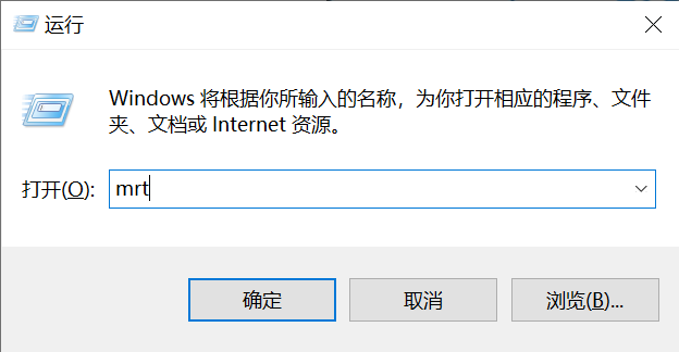 1、按 Win + R 组合键,打开运行,并输入:mrt 命令,确定或回车,就可以快速打开Windows恶意软件删除工具;