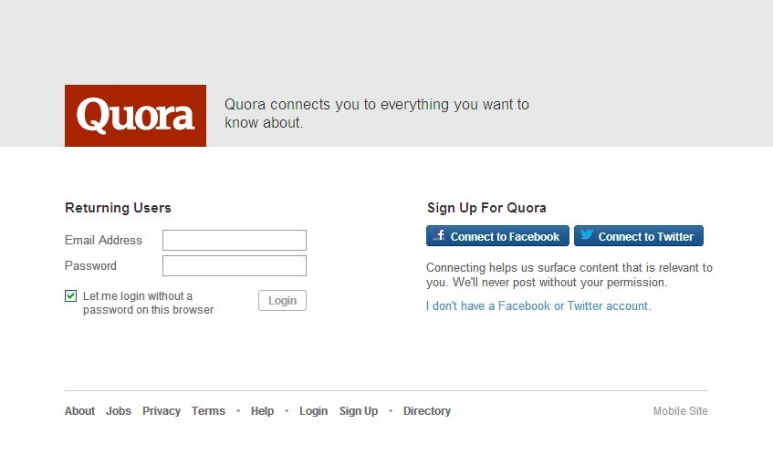 问答式社交网站Quora首页