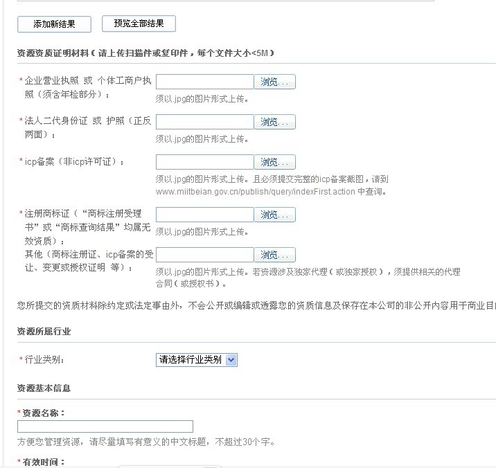 按照要求,上传扫描件,用资源名称填写你的品牌名称,按照要求提交成功后会弹出一个窗口,等待审批。一般情况下需要五个工作日,也就是一个星期。五个工作日后,别等了,登录你在http://open.baidu.com/data/ms/userzone/.的百度账号,点击我的资源,查看左边的资源列表。如果已经生效,可以在有效资源中看到。这时,如果你在百度上搜索你公司的品牌名称,你应该可以在百度的前三位看到你公司通过百度安全认证的客服电话,下面是你公司的官网地址。如果没有生效,就需要打开无效的资源。可以看到里面的提示信息。就是因为哪个不符合要求没批下来。按照要求修改一下再提交就可以了。这里大家难的是ICP备案这个截图。此截图必须从他人指定的网站查询。Www.miitbeian.gov.cn/publish/query/indexFirst.action,未备案的网站域名无法认证。这一步,很多人容易出错,找不到备案信息。你可以按照我的方法输入你的公司域名,很快找到,如图: