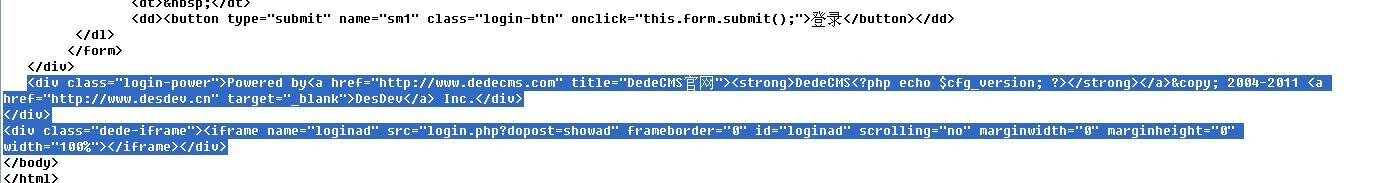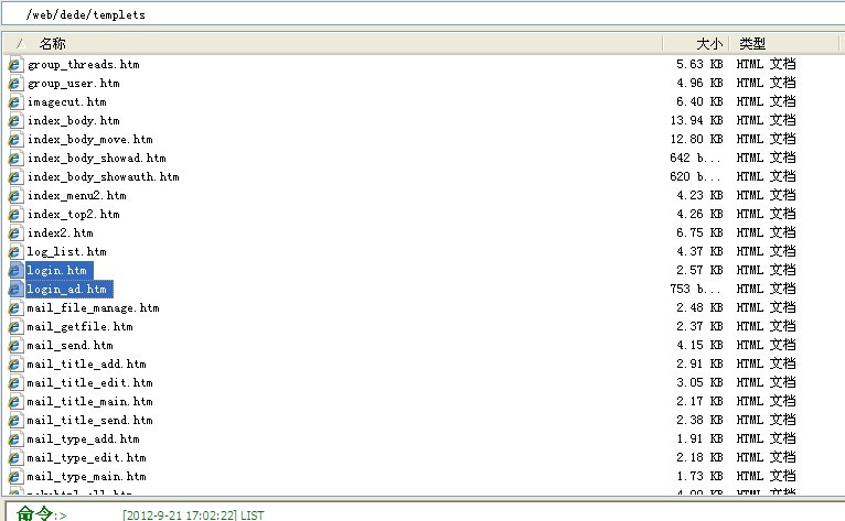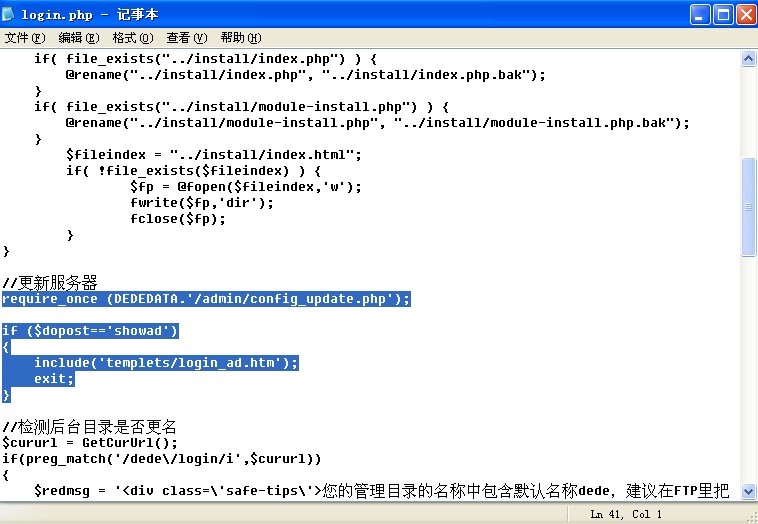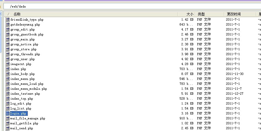 如果你还没有完成这一切,回到FTP,向上一级,找到dede下的文件login.php,下载到你的电脑,用记事本打开。
