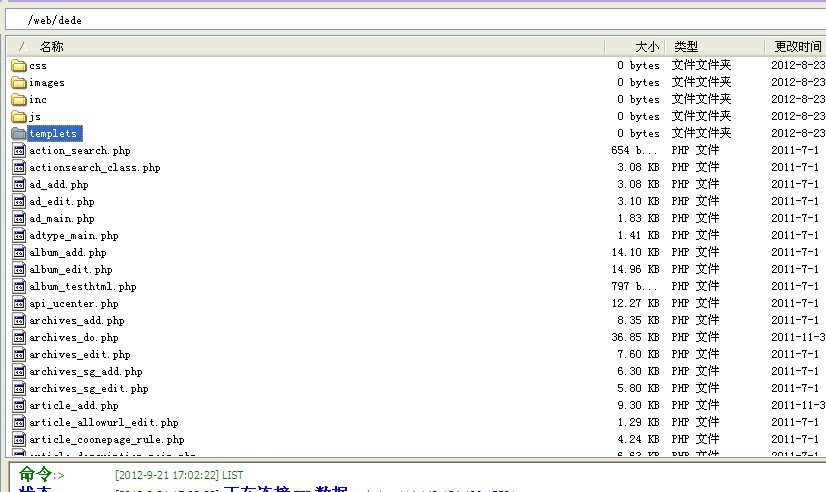 首先,打开FTP软件,登录FTP。如果你的后台登录文件夹没变,就是dede。在登录框的顶部会有一个提示,“您的管理目录的名称包含默认名称dede。建议在FTP里换个名字,这样会更安全!”如果您更改文件夹名称,它就是该文件夹。如果您更改了文件夹,请将其打开,并在下面找到模板,如图所示: