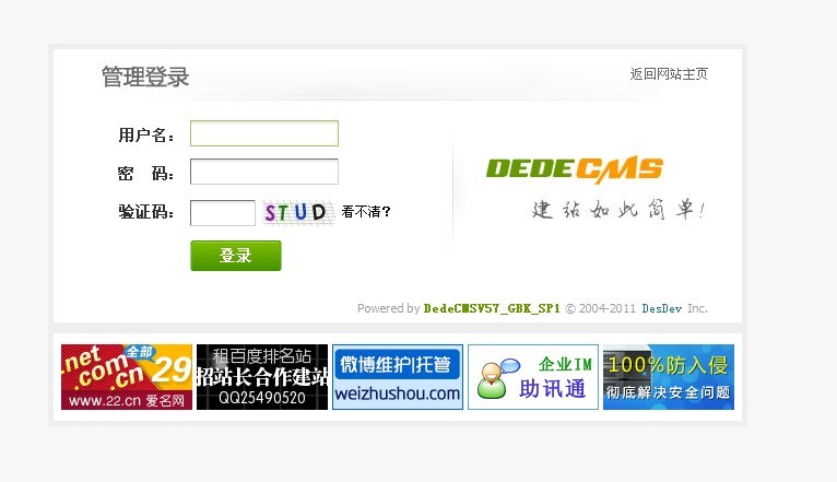 Dedecms程序是一个可以快速更新的网站程序,也是目前界面比较流行,比较顺眼的cms程序。我以前比较喜欢用wordpress建网站,主要是因为它的模板多,插件强大。这段时间使用dedecms比较多,但是在使用过程中发现了一些和wordpress的区别。其实问题不大。只是做SEO优化的人对链接更敏感,主要是相对于德德的后台登录界面。色彩丰富多了。wordpress的纯白登录界面简洁清爽,但是dede的配色也相当不错。登录界面除了比wordpress多了一个验证码输入框,下面还多了五个图片广告位。