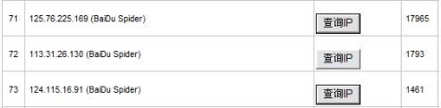 我们知道,百度蜘蛛一般来自两个IP段:202.181.108。*和123.125.71。*(对了,这两个IP段的百度蜘蛛并没有所谓的高权重和低权重)。显然,这三个IP在“常识”上,不属于百度蜘蛛所属的IP段。