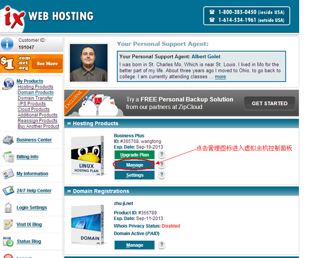 第二种:每月7.95美元 15个独立IP;免费赠送3个.com域名