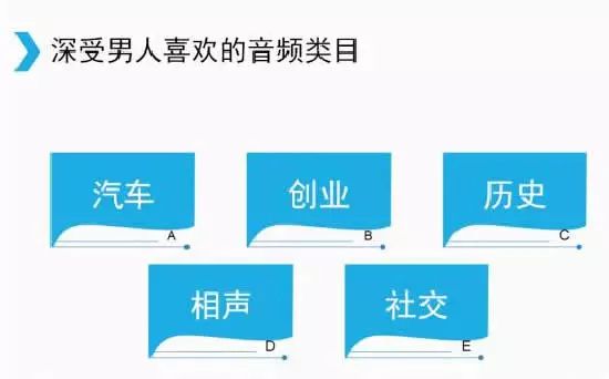 作为男人来说,主要感兴趣的领域是相声,历史,经典老歌,创业,汽车,军事,体育,社交,励志,新闻等这些板块的类目。