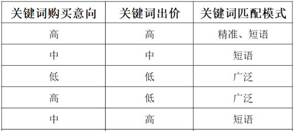 多数情况下我们的关键词意向度越高匹配模式越精准,关键词意向度越低匹配模式越宽泛。