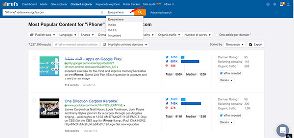 通过Ahrefs我们能找到提及iPhone的页面,但还需要进一步筛选,因为其中有一些已经添加了苹果官网的连接。