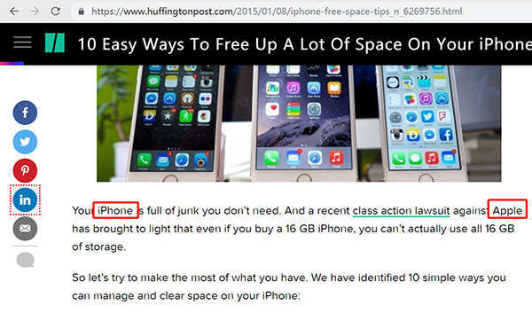 品牌提及指的是外部站点有提到我们的品牌但没有链接到官网。本文以 “Apple”品牌为例,如下图所示:该页面提到了Apple,也提到了iPhone,但没有添加苹果官网的链接,这时候再去联系对方给网站添加外链的成功率也会大大提高。