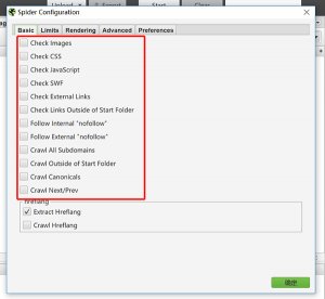 另外,为了保证爬取的速度,建议在Configuration>Spider>Basic设置中取消勾选所有内容,同时在Configuration>Spider>Limits中将爬取深度设置为0: