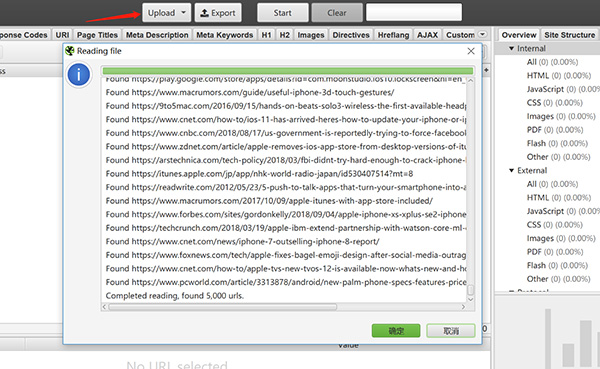 接着在Mode的菜单栏中选择List模式,上传从Ahrefs中导出的文件