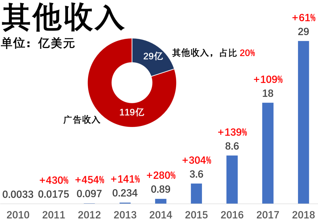 百度2018年其他收入是29亿美金,这样看爱奇艺的非广告收入在其中的占比高达 76%。