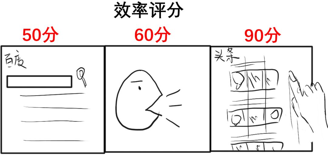更高效的移动端信息获取方式是字节跳动的个性化推荐+信息流,完全省略掉用户的输入,打开app就是你喜欢的信息,且无限下滑,也就是张一鸣说的用“信息找人”替代之前百度的“人找信息”。