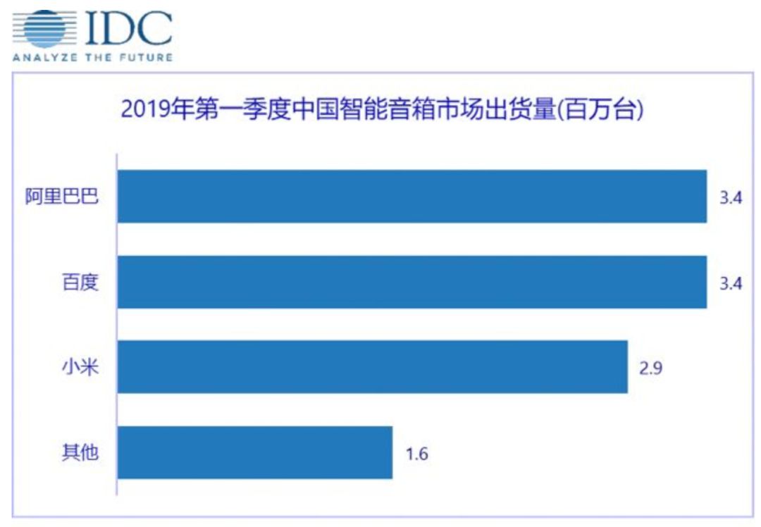 国内智能音箱市场呈现三足鼎立的局势,阿里巴巴+百度+小米相加的市场占有率超过 91%。