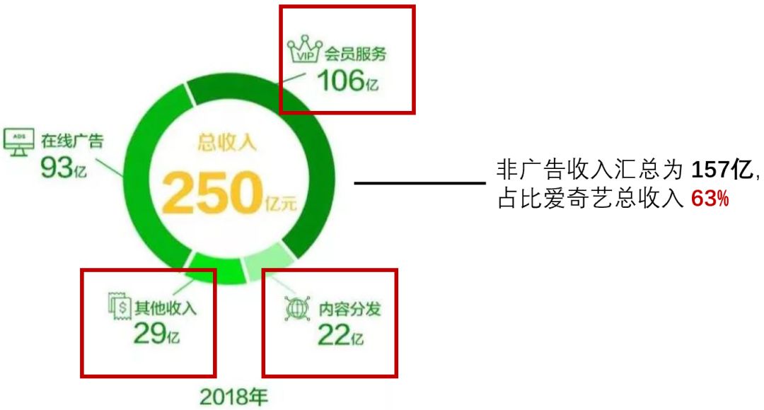爱奇艺2018年年报显示,其收入有 63%来自非广告收入,大头是付费会员收入。