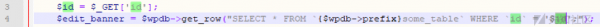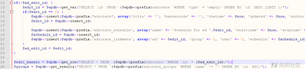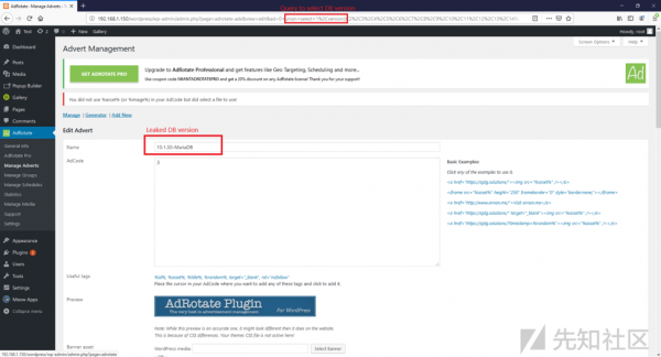 在前端进行输入的时候,可以插入恶意的sql注入代码,如果后端没有对前端输入进来的参数值进行安全过滤拦截,那么就会导致sql注入漏洞的发生,我们来看上面的一段代码。该代码在写的时候,会将get中的ID,传入后数据库中进行查询,没有做任何的安全过滤导致sql注入,在wordpress最新版中以及将get、post、cookies、提交的方式进行了安全拦截,对一些非法的字符与sql注入攻击语句加强过滤,但是还是被绕过,导致sql注入的发生,就拿adrotate插件来说,在dashboard目录下的publisher文件夹下的adverts-edit.php代码中第46行: