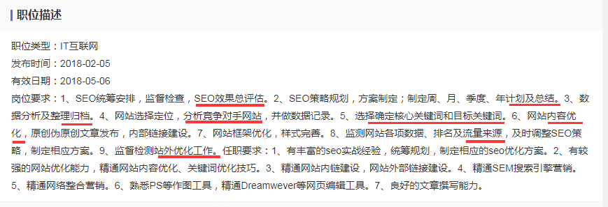 例如:要求你选择核心关键词、目标关键词,这中间就包含了监控、观察、筛选、检验等多个环节的步骤;要求做站外优化工作,也包括外链优化、品牌的建设和推广等等。