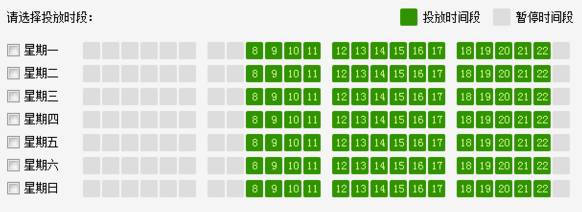注:8点到22点,推广时间应该为8时01分-22时59分,其他的时间依此推算。简单的说,选择某个整点,既是从他的01分开始到 59分结束。