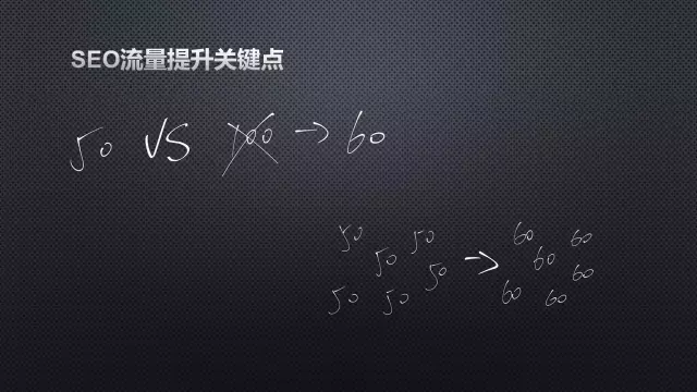 因为其实,我们在SEO上只要做到60分,很多时候就足够了。就像关键词排名问题,只要我们分数比竞争对手都高,哪怕只高一点点,我们也是第一名,拥有最大化的流量收益。