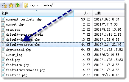 其次,把wp_includes文件夹下的default-widgets.php的文件传输到本地,