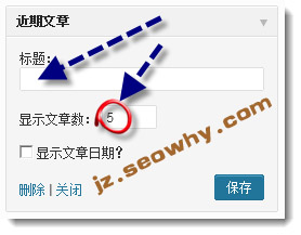 添加了近期文章小工具之后,会有出现这样的设置界面,