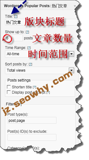 第三个步骤:配置Wordpress Popular Posts小工具;