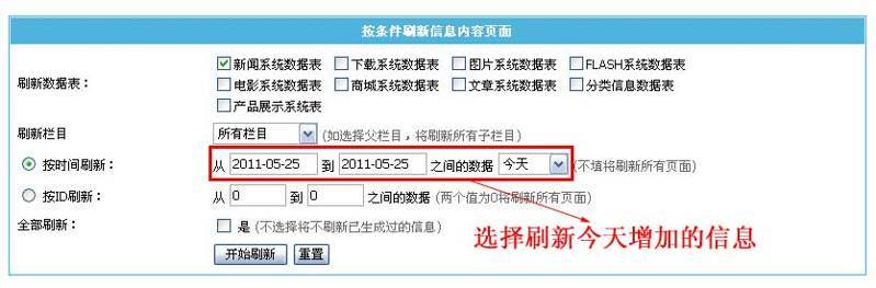 “系统”>“数据更新中心”>“[按条件刷新内容页]”: