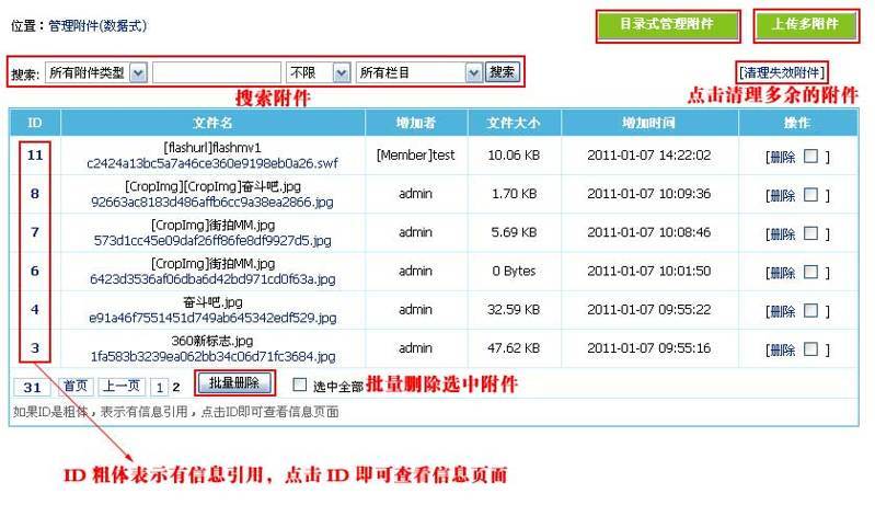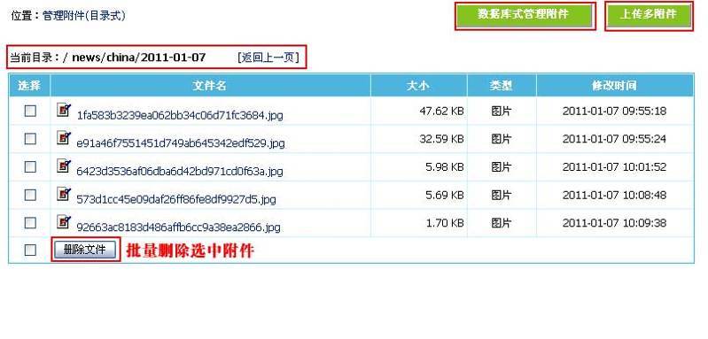 目录式管理附件:管理站点所有的附件,包括FTP上传及通过系统后台上传的附件。