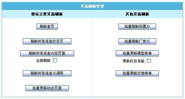 | [刷新所有信息栏目页] | 生成所有栏目页面和专题页面。 |