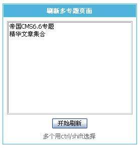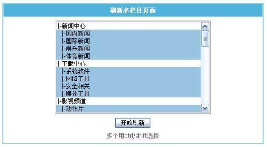 下拉框中显示了当前所有的栏目,同时按住Ctrl(或Shift)键并单击鼠标可选择多个栏目,再单击“开始刷新”按钮进行生成。