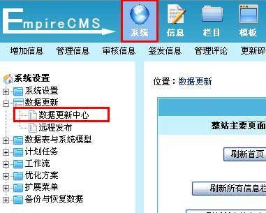 帝国cms后台网站数据更新功能详解,更新功能的使用