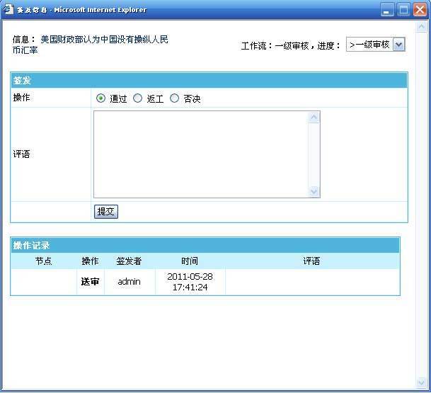 (2)、设置工作流流转后,增加信息就需要签发才能审核通过。