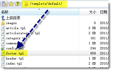 第二步:打开模板下的footer.tpl文件,这里以默认模版为例,