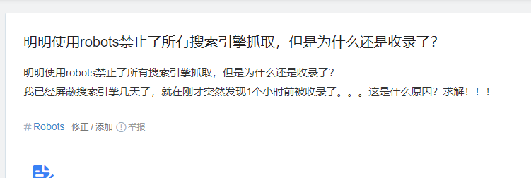 通过robots文件屏蔽搜索引擎,但还是被收录,什么原因?