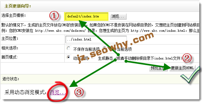 默认情况主页模版是default/index.htm,因为模版文件夹已经变成seowhy,因此需要将主页模版修改为seowhy/index.htm。