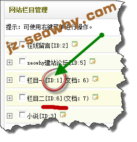 选择核心–常用操作–网站栏目管理,每个栏目后面都有一个数字id。