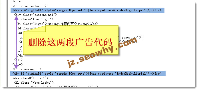 默认情况下,安装完dedecms程序,在首页右边位置会有两个广告,这也需要删除。