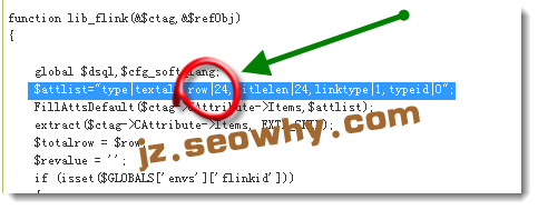 最后:找到这段代码,$attlist=”type|textall,row|24,titlelen|24,linktype|1,typeid|0″,把row后面的24修改成你