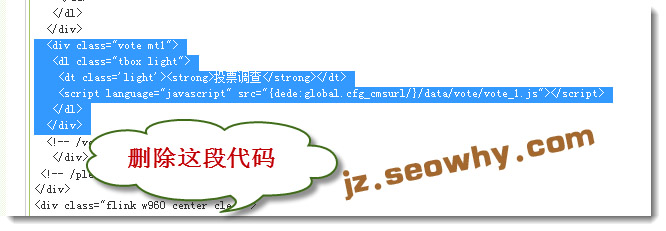 最后:删除dedecms首页默认的投票调查版块代码。