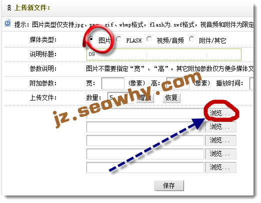 选择核心-附件管理-上传新文件,上传的文件类型可以是图片、视频,说明标题任意填写,然后选择浏览上传图片;