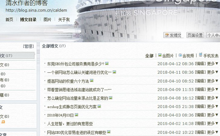 举个例子:清水SEO顾问是做网络优化网站,在做外链的时候选择了权重比较高的新浪博客,而且经过测试之后收录快排名高效果明显,然后清水SEO顾问将文章发布到网站知识这个分类下,把电话、QQ、域名等都带上,在附带几个产品图片然后发布出去,这类的网站一般都不需要审核所以发布后就可以看到信息,等待一会或者隔天查看就可以看到被收录了。