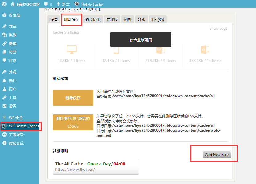 wordpress加速优化:WP Fastest Cache 插件如何设置使用