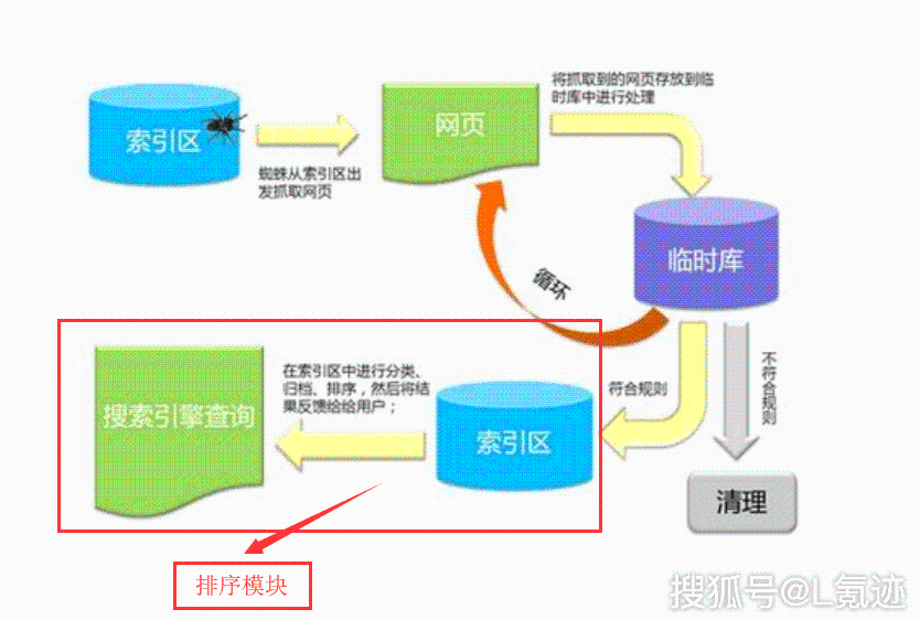对存入到索引数据库中的页面,通过搜索引擎一系列的算法,会得到每个页面的权重,然后将其进行排序处理,实现这个功能的程序模块,我们称之为排序模块。