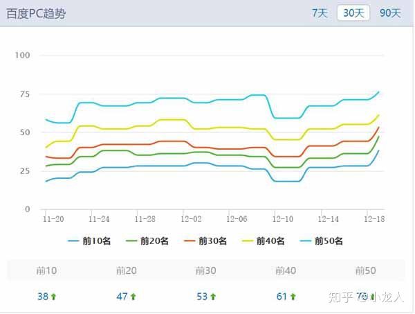 11月4日接手某网站(暂且叫A吧,尊重版权)优化,12月20日,站长工具显示,网站A各项指标呈上升趋势,度娘权重 BR由1提升到4,日均流量由32增加至1262,关键词库中关键词数量由个位数增加到76(首页38),索引量由7000+提升至8188,38个行业流量词、3000+长尾词冲入度娘首页,标志者网站A的优化取得了阶段性成功。