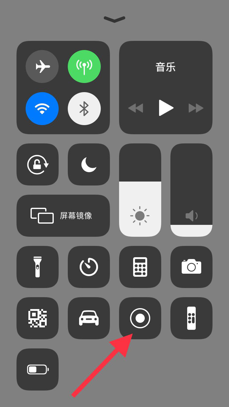 接下来呼出控制中心,然后便可以看到屏幕录制按钮了,如图所示。