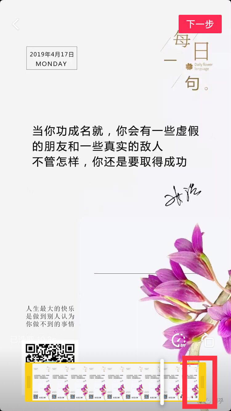 将刚才录好的视频选择进来,选取一下视频(将右边黄色方框拖到前面),后面一段关掉录屏的画面不要,然后点击“下一步”。