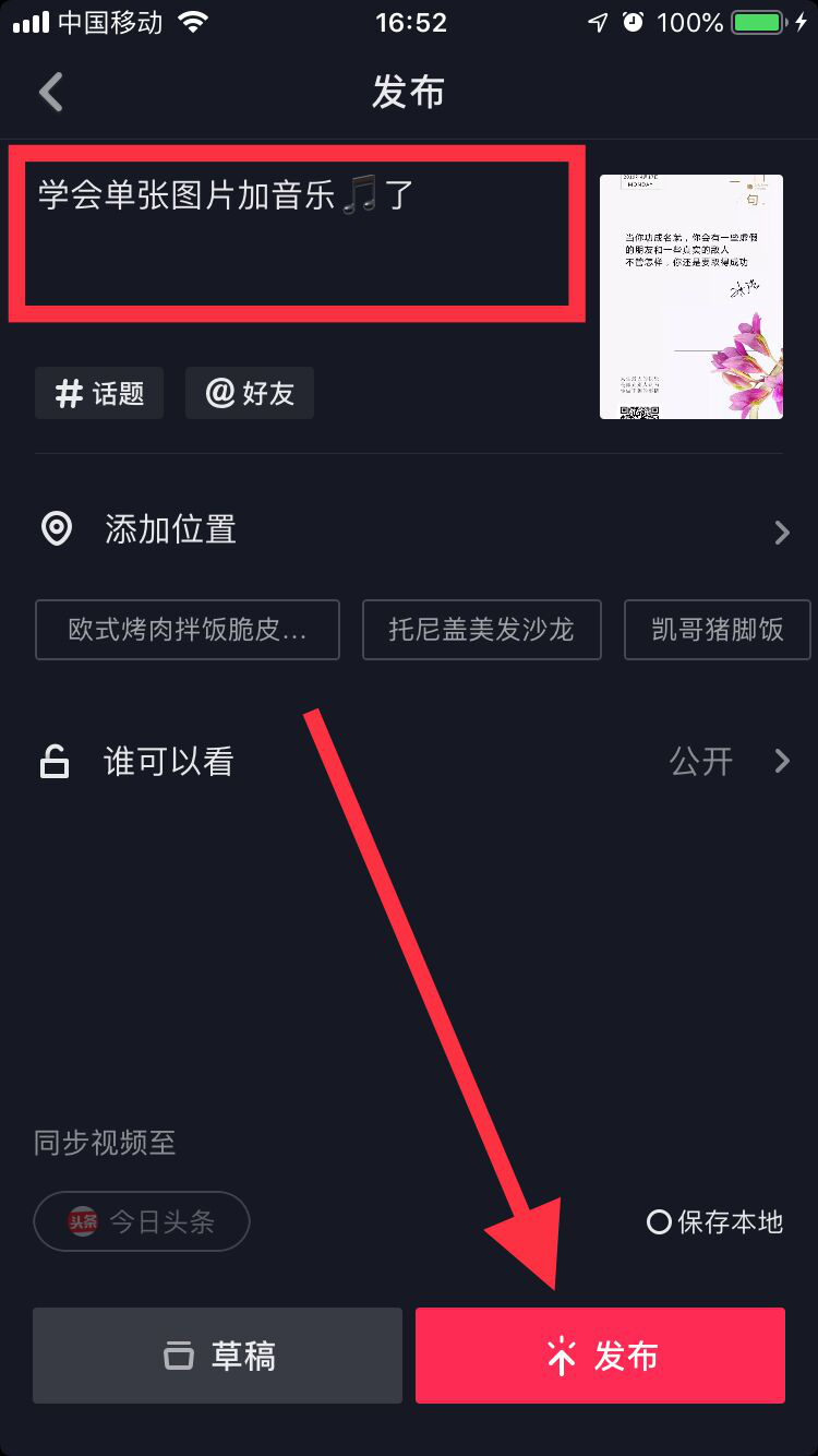 以上是我实践中所总结分享的 希望不知道如何在抖音给单张图片加音乐的实践一下。或者分享本条内容让更多人知道。