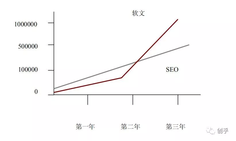 我们用两种主要网站推广方式 SEO 与软文进行对比,我们会发现,